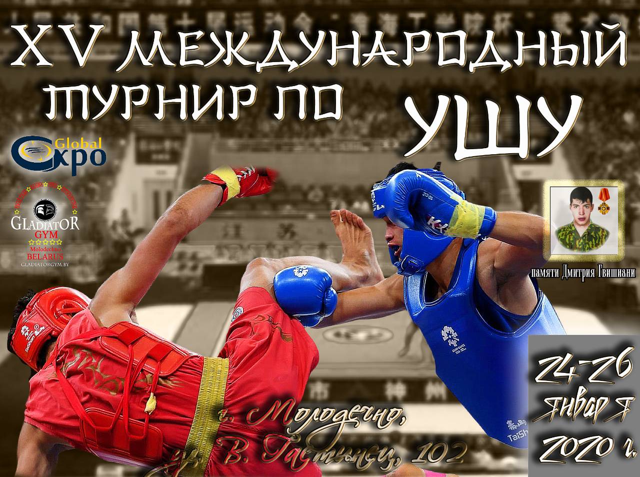 В соответствии с планом мероприятий Министерства спорта и туризма Республики Беларусь и Белорусской федерации УШУ в период с 24 по 26 января 2020 года в г. Молодечно проводится международный турнир по ушу (саньда) памяти курсанта Военной академии Республики Беларусь Дмитрия Гвишиани.